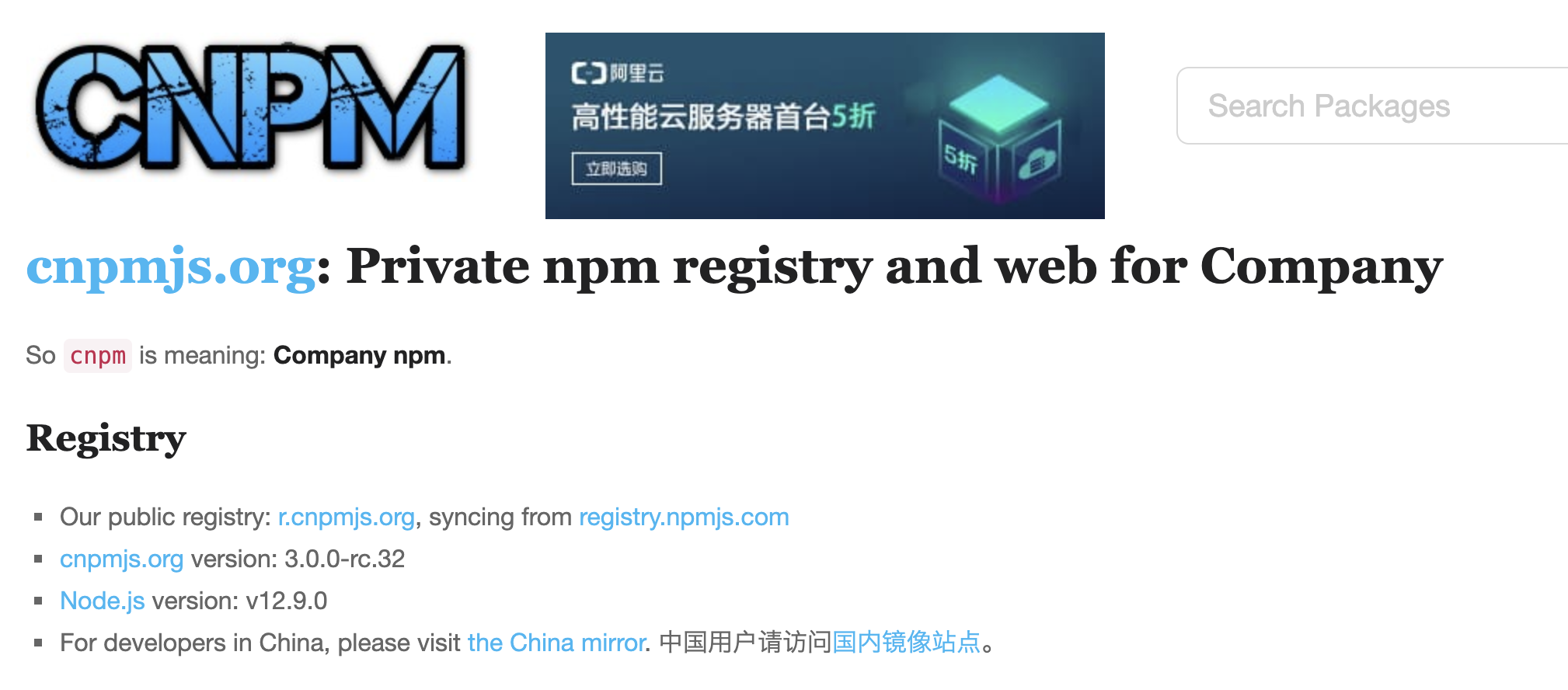 見たところ、CNPMはtaobao(中国の楽天とかAmazonみたいなサイト)のドメイン下にミラーがある模様なので、中国国内のネットワークでも問題なく利用できるのでしょう。