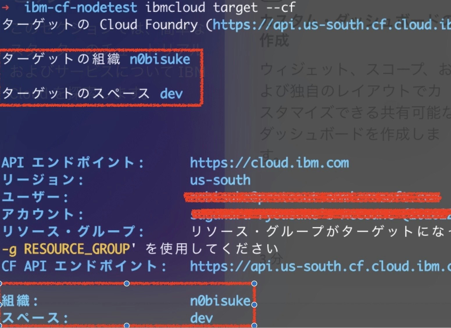 $ ibmcloud target --cf補足: 別のやり方
